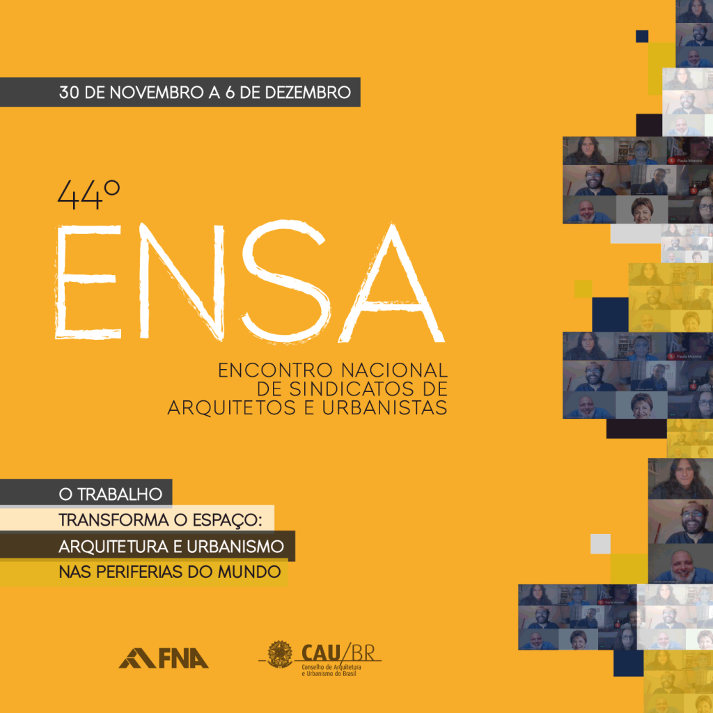 O 44º Encontro Nacional de Sindicatos de Arquitetura e Urbanismo (ENSA) será diferente. Não só pelo formato digital que se tornou necessário nos tempos atuais, mas também pela pauta que se impõe na atual conjuntura. Além de todas as questões relacionadas à profissão do arquiteto e urbanista e os impactos dessa atuação no planejamento das […]